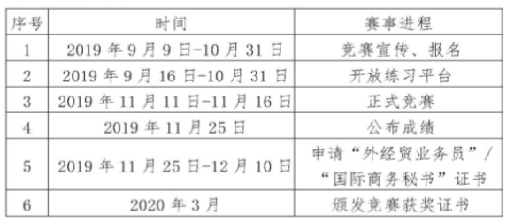 为贯彻落实《高等学校外国语言文学类专业教学质量国家标准》和《高等学校商务英语专业教学指南》,探索以赛促教、以赛促学的途径与方法,培养学生商务素养,搭建教学成果交流和学生风采展示平台,经研究决定于 2019 年 11 月 11 日-11 月 16 日举办“第三届全国高校商务英语知识竞赛”(以下简称“竞赛”)。