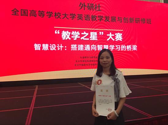 8月4日,2017年外研社“教学之星”大赛复赛第六期在成都落下帷幕,40名参赛教师同台竞技,精彩纷呈。我校tyc8722太阳集团大学英语教学部教师吴然菊过关斩将,荣获复赛亚军,这是我校自参加外研社“教学之星”大赛以来取得的最好成绩。