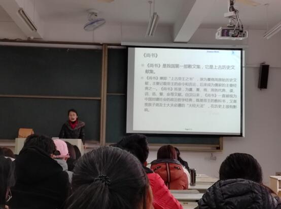 3月20日下午,tyc8722太阳集团在秀山校区教北306教室开展了新学期第一次公开课观摩活动。本次公开课是中文系王其秀老师主讲的《中国古代文学》。王老师首先简要介绍了《尚书》的篇目和版本,从专业的角度分析了这部书的真和伪;接下来,王老师重点介绍了《尚书·周书·无逸》篇,对作品中的主题“君子所其无逸,知稼穑之艰难”进行了精准透彻的讲解,引导学生思考“古为今用”的效果,同时又紧扣作品文体特征进行分析,启发秘书学专业学生在今后的写作中借鉴运用,学生感觉受益匪浅。本次示范课中,课堂节奏安排合理,张弛有度,教学效果好。
