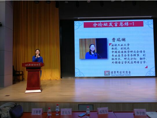 在本届高端论坛上,曹瑞斓教授还受邀担任分论坛主持人,并以赏心悦目的主持风格和专业的主持水平被推选在论坛闭幕式上总结发言。她在闭幕式上的精彩总结得到了在座的学会领导、嘉宾和与会各界代表的高度赞赏,展示了我院形象,并借此机会诚挚向各界友人发出来访邀请。我院教师今后将积极参与国学经典的研究和译介活动,践行国家号召,为弘扬国学经典在全球的传播、促进中华文化“走出去”,推动我院学科发展,进一步扩大学院的影响力、提升学院的美誉度而努力。(撰稿:于春莉、庞东霞;审核:洪流)