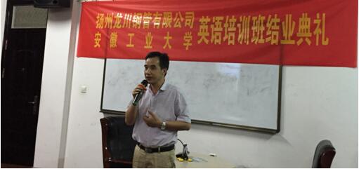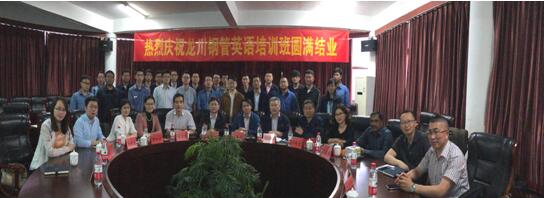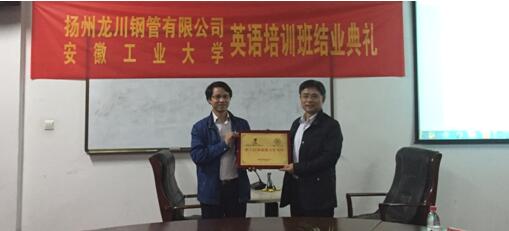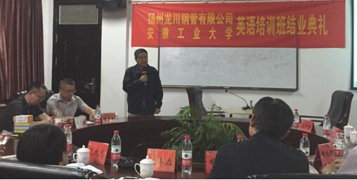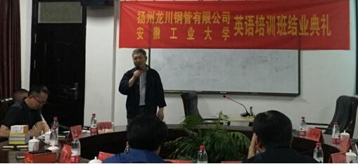 5月26日下午,我校tyc8722太阳集团与扬州龙川钢管有限公司合作举办的历时一年多的员工培训顺利结业,双方在扬州龙川钢管有限公司举办培训成果展示活动暨结业典礼。tyc8722太阳集团领导班子成员胡卫东、黄宇弦、曹瑞斓和承训教师代表周家春、詹声斌、宋严侠,龙川公司领导史善淼、尤凤志、王鹏展及全体学员等40多人参加了典礼。