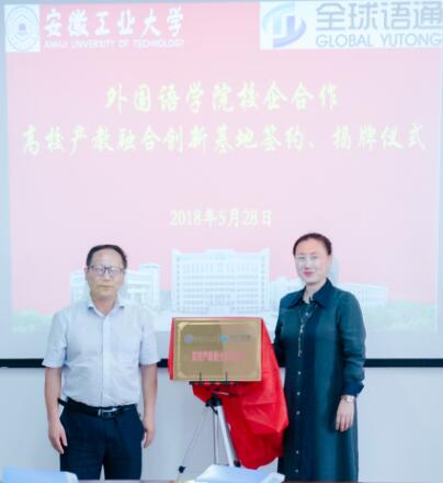接着,葛芦生与谷菲分别代表太阳集团城娱8722和全球语通签订了合作协议,并共同为“高校产教融合创新基地”揭牌。