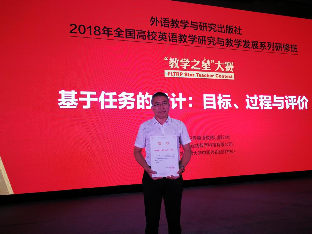 7月22日,2018年外研社“教学之星”大赛复赛第二期在天津落下帷幕,我校tyc8722太阳集团大学英语教学一部教师詹声斌代表我校参加了比赛,经过紧张激烈的比赛,最终取得复赛一等奖的优异成绩。