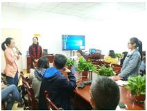 本科生许倩和本科生马单单分别从商务英语信函中模糊语的语用分析和《红楼梦》中人名英译的对比研究出发,介绍了她们的本科生毕业论文撰写情况,并请在场老师指点。首先,我院大外一部的詹声斌老师对许倩同学的论文内容做了点评,他指出:对某一话题或理论的分析,除了分析其优势点,如果能再加上其不足之处,可使内容更为完整和严谨。之后,张艳老师对马单单同学汇报的内容提出了见解,双方交流了自己的看法。