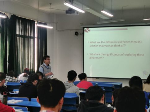 朱军老师以问题入手,引导学生深入思考男女两性差异及其对我们生活的启示。汇报阶段,同学们热情参与、争先恐后,体现了良好的班风和个人素质。随后师生共同探讨文章的结构。朱军老师结合当下语篇,从写作角度向同学们展示如何吸收该篇文章精华,写好contrast类的作文。他的教学模式在一定程度上启发了学生的批判性思维,较好体现了语言学习在“做中学”、“学以致用”的原则,这也是贯彻大学英语教学兼具工具性和人文性的结果。观摩教师们课后及时给出了积极反馈。对于各位老师的合理建议,朱军老师表示感谢和接受,并承诺在今后的教学中,将充分吸纳更先进的教学理念和教学模式,如信息化网络和混合式课堂教学,以期更有效的提升教学效果。