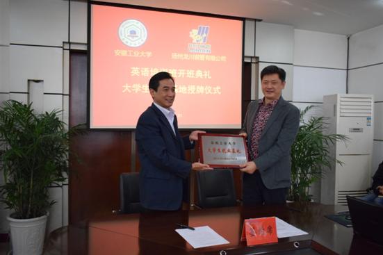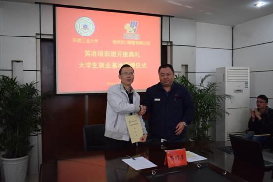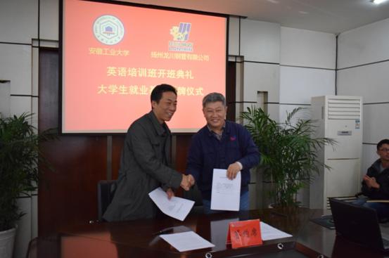仪式上,陈润向马自强授牌,建立太阳集团城娱8722-龙川钢管有限公司“大学生就业基地”。校就业中心主任丁忠利介绍了我校大学生就业工作和就业基地建设情况,校企双方签订了人才供需合作协议。