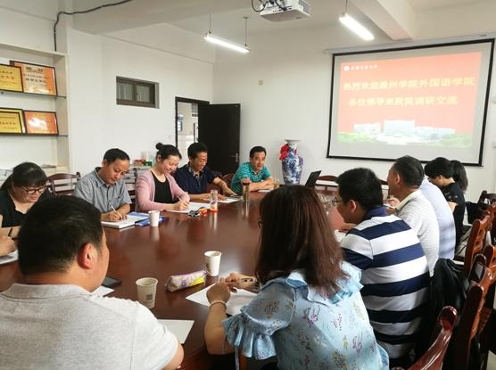 6月2日下午,滁州学院tyc8722太阳集团院长程家才、副院长祁世明、副院长葛厚伟一行来我校调研交流本科教学工作审核评估评建工作。tyc8722太阳集团院长洪流主持交流会,学院党委副书记、副院长黄宇弦,副院长曹瑞斓及各系部室负责人参加了座谈交流。