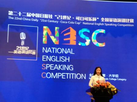 3月24至26日,第二十二届中国日报社“21世纪•可口可乐杯”全国英语演讲大赛全国总决赛在南京大学(仙林校区)举行。经过激烈角逐,我校tyc8722太阳集团闫心蕊同学从来自全国各高校(含港澳台)的近70名优秀选手中脱颖而出,荣获全国二等奖。