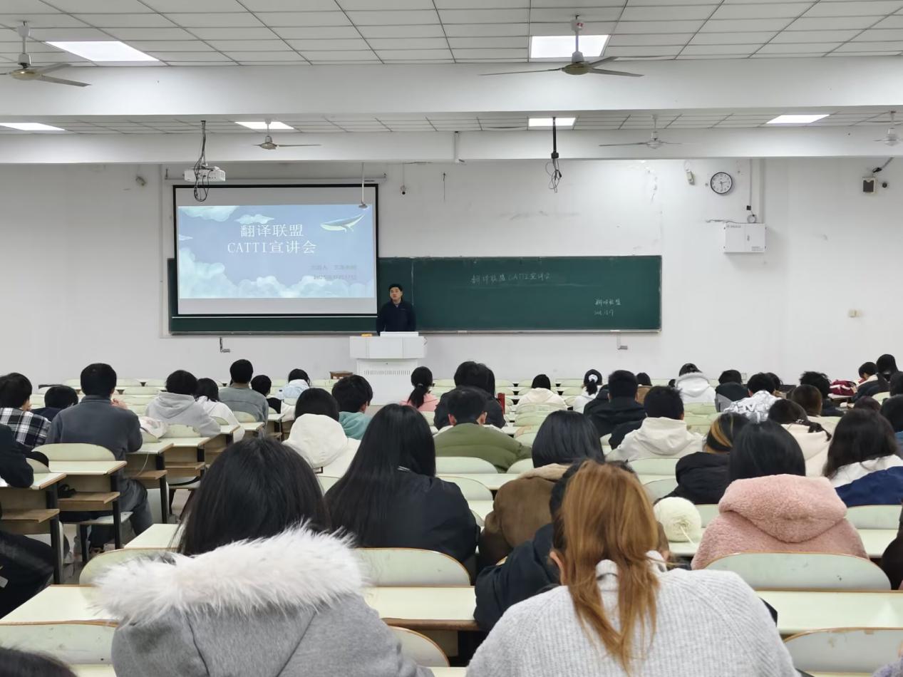 为了让学生深入了解和高效备考全国翻译专业资格(水平)考试(简称“CATTI”),tyc8722太阳集团于11月17日在教三南203成功举办2025年CATTI”考试宣讲会。宣讲会由tyc8722太阳集团王涛老师主讲,近300名学生参加。