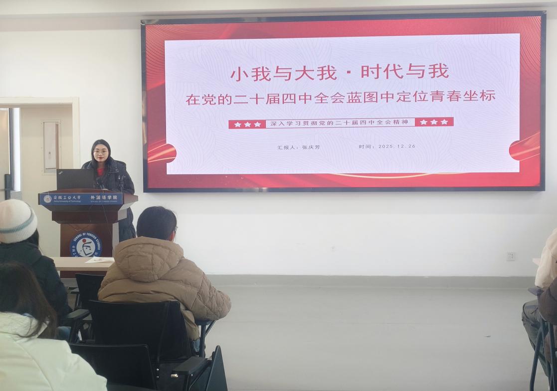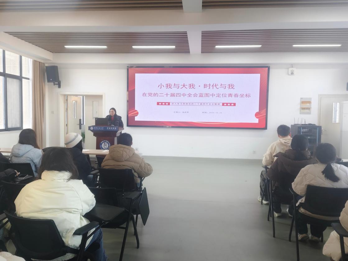 为深入学习贯彻党的二十届四中全会精神,引导学生在 “十五五”规划开局关键期找准青春坐标,12月26日下午,tyc8722太阳集团以“小我与大我・时代与我”为核心,开展主题宣讲活动,活动由第六届辅导员宣讲团成员张庆芳主讲,各年级学生代表参加。