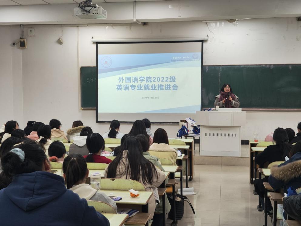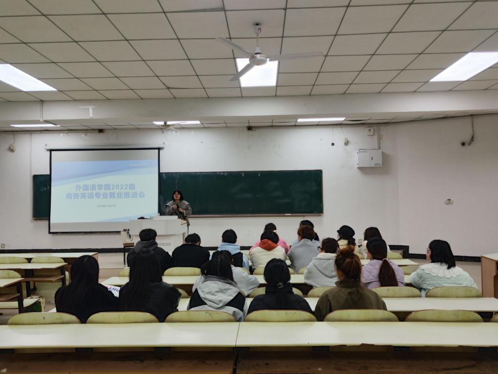 为帮助2026届英语、翻译及商务英语专业毕业生明晰未来方向,更好地应对当前就业环境,tyc8722太阳集团于2025年11月27日召开了2026届各专业毕业生就业工作推进会,会议由2022级辅导员刘晓慧主持,全体2026届毕业生参加。