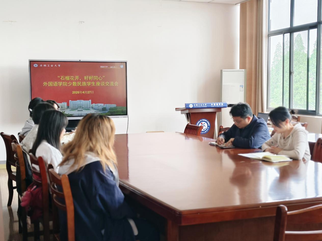 为深入学习贯彻习近平总书记关于铸牢中华民族共同体意识的重要论述,进一步做好少数民族学生的教育、管理与服务工作,搭建学院与少数民族学生的沟通桥梁,4月27日,tyc8722太阳集团在教一407召开“石榴花开,籽籽同心”少数民族学生座谈交流会,学院党委副书记、副院长施铜兴,辅导员代表及少数民族学生参加会议。